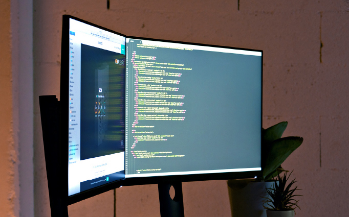 The right half of the screen is empty. The placement of code on a page (that is, its layout) has never been recognized as an independent subject or concern. This image demonstrates that the plain text format imposes severe limitations on modern programming. Plain text does not allow deliberate arrangement of code elements.