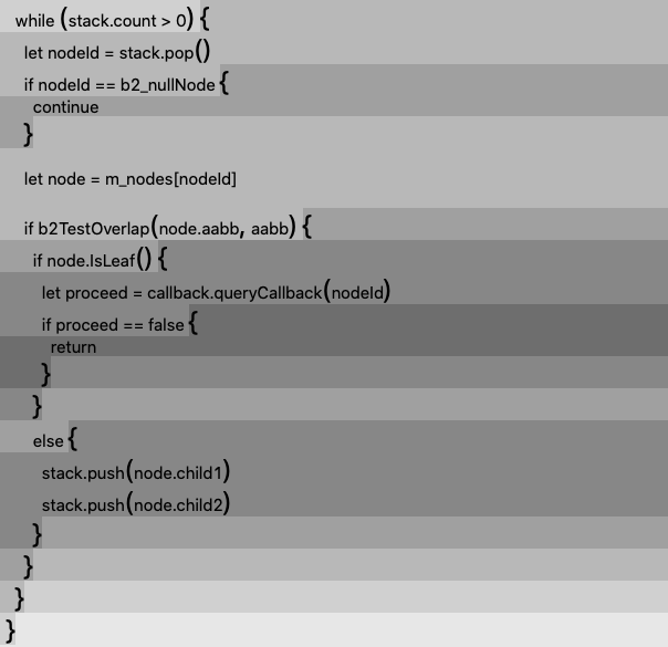 A plain text code file does not naturally reveal its underlying containers or nesting levels (as follows).